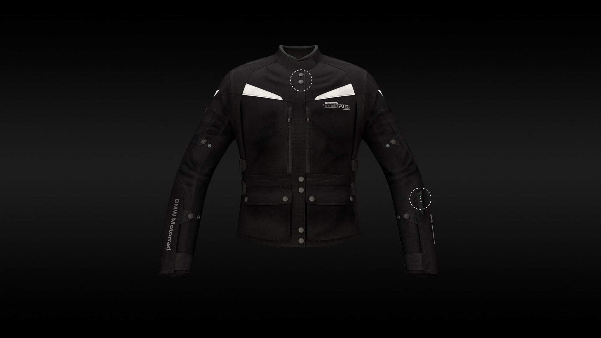 Rezervată anterior piloților profesioniști din Moto GP, acum o poți purta și tu în traficul obișnuit de pe drumurile publice. Și pe orice motocicletă - fie un Maxi-Scooter, fie un R 1200 GS. În colaborare cu Alpinestars, BMW Motorrad aduce pe piață o geacă cu airbag integrat. Este o zonă de protecție deosebit de mare pentru spate și umeri. Sistemul se activează imediat ce este închis fermoarul până sus și oferă protecție maximă în fiecare situație de pilotaj, fără a fi conectat de motocicletă. Protecția completă se activează în maxim 85 ms. A clipi din ochi durează mai mult cu 100 ms până la 400 ms. Aceasta este inovaţie în echipamente.